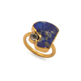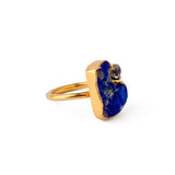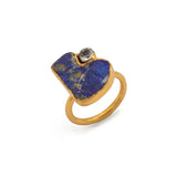 As you slip this silver gold plated ring onto your finger, you'll feel a sense of awe wash over you. This is no ordinary piece of jewelry - it's a work of art. Set with a striking̴ rough lapis lazuli stone, this ring captures the essence of the azure sky. The deep, rich color of the lapis lazuli is unparalleled in its beauty.