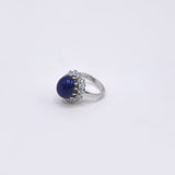 Crafted with precision, the Celeste ring features a natural lapis lazuli gemstone set in sterling silver, accented by sparkling zircon stones. This handcrafted piece combines timeless elegance with expert artistry, offering a unique accessory that enhances any collection with its rich blue hues and refined detailing. Ideal for those who appreciate quality and distinctive design.