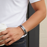 Introducing our exquisite unisex steel bangle, width 12 mm, handcrafted by Orah Jewels and Crafts artisans. Adorned with the captivating beauty of tiger iron from Australia, this bangle showcases the timeless elegance of natural gemstones. Skillfully inlaid using the renowned techniques of pietra dura and parchan kari, this piece exemplifies the fusion of tradition and innovation. Pietra dura, an ancient art form originating from Italy, involves the meticulous process of inlaying cut and polished stones into a base material, creating intricate designs and patterns. In Urdu, this technique is known as parchan kari, reflecting the rich heritage of craftsmanship.