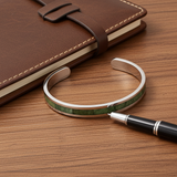 Introducing a stunning steel unisex bangle from Orah Jewels and Crafts, meticulously inlaid with green idocrase stone by our skilled artisans. This exquisite piece features the traditional pietra dura technique, known as parchan kari in Urdu. Pietra dura, an ancient art form originating from the Italian Renaissance, involves inlaying finely cut and polished stones into a stone base, creating intricate and beautiful patterns.