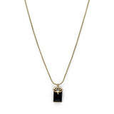 This bold and beautiful necklace showcases a large, polished black tourmaline stone ethically sourced from Skardu, Pakistan. Set in sturdy brass and crowned with a lotus motif, the piece combines strength, symbolism, and grounding energy. Known as a powerful protective stone, black tourmaline is believed to repel negativity and offer emotional balance, making this necklace both spiritually meaningful and visually striking.
