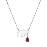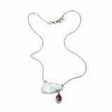 A delicate harmony of colors inspired by nature, this pendant features raw, natural aquamarine paired with a raw ruby, set in sterling silver. The contrasting tones of cool blue and vibrant red capture the playful, shifting hues of the Satrangi Collection, creating a piece that feels organic, vibrant, and effortlessly enchanting.