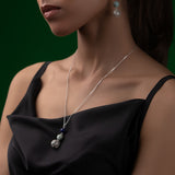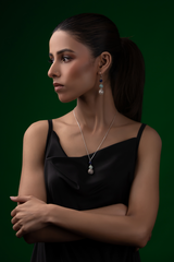 The Darya-e-Makli pendant is a breathtaking blend of artistry and heritage. Handcrafted in high-quality silver, this stunning piece features the mesmerizing deep blue hues of lapis lazuli and the soothing green tones of amazonite. Together, these natural gemstones create a harmonious combination that radiates elegance and timeless charm.