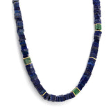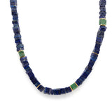 Indulge in the timeless allure of our necklace, crafted with exquisite blue lapis lazuli sourced from Afghanistan. Meticulously cut into rectangular pieces, each lapis lazuli gem radiates elegance and sophistication. The necklace features a stunning arrangement of rectangular beads, gracefully strung and interspersed with vibrant green squared aventurine, creating a harmonious blend of colors. Set in fine silver, this gemstone necklace reflects the essence of Pakistani jewels, showcasing our commitment to quality craftsmanship and the rich heritage of gemstone artistry. Elevate your style with this unique creation.