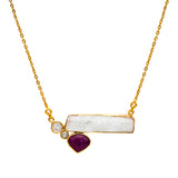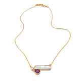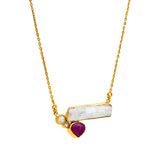 A dance of color and light captured in one pendant. This piece features raw, natural aquamarine and ruby, accented with a sparkling zircon, all set in sterling silver. The organic shapes and vibrant tones evoke the shifting colors of the sky and landscape that inspired the Satrangi Collection, creating a pendant that feels playful, radiant, and full of life.