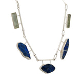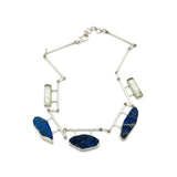 Handcrafted in silver, the Roshanara Necklace is set with uncut lapis lazuli and aquamarine sourced from the Skardu Valley, highlighting the natural beauty and vivid hues of each gemstone. Inspired by the architectural and artistic heritage of Shigar Fort, this necklace is meticulously crafted by skilled artisans, celebrating the raw elegance of heritage-inspired design and reflecting timeless sophistication.
