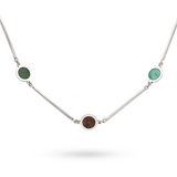 Elevate your style with 'Serene Elegance,' our sterling silver necklace adorned with gemstones sourced from Pakistan's diverse regions. Featuring Nephrite Jade from KPK, Amazonite from Gilgit Baltistan, and Red Jasper from Baluchistan, this masterpiece embodies the essence of gemstone jewelry made in Pakistan.