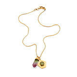A fresh celebration of nature’s vibrant colors, this pendant features a natural watermelon tourmaline paired with raw, natural peridot, set in sterling silver. The organic textures and lively hues reflect the playful, shifting tones that inspired the Satrangi Collection, creating a piece that feels joyful, luminous, and effortlessly enchanting.