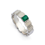 A unique silver band set with a natural emerald from Swat Valley, this ring brings the rich green of the gemstone to life. Part of the Sunheri Shaam collection, it reflects the warmth and elegance of a golden evening.