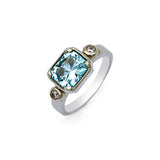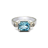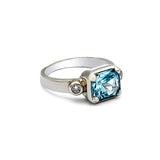 A classic silver band elegantly holds a natural blue topaz from Skardu Valley. The gem’s brilliant blue hue catches the light beautifully, creating a timeless piece that radiates refined elegance.