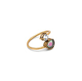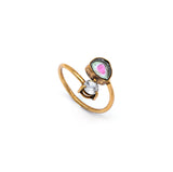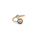 Embrace the raw beauty of Pakistani jewelry with this exquisite silver ring with gold plating from Orah Jewels and Crafts' Koh-i-Rang collection. Designed to celebrate the natural vibrance of gemstones, this handcrafted masterpiece features a mesmerizing watermelon tourmaline from Afghanistan and a brilliant topaz from Skardu, Pakistan. The unique combination of the rich pink and green hues of tourmaline with the sparkle of topaz creates a stunning contrast, making this ring a true statement piece.
