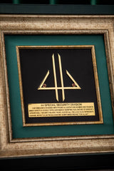 The design is framed within a sophisticated structure, perfect for display on a wall or a prominent surface. Below the central logo, a dedicated space (as seen in the image, likely a metal plate) is included for personalized inscriptions, such as the division's name, a significant message, or details of a presentation.