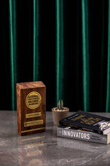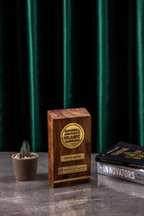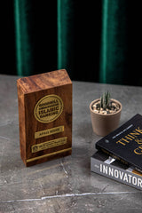 The elegant contrast between warm wood tones and polished brass conveys both prestige and authenticity, making it a meaningful token of recognition and honor.