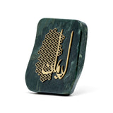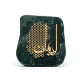 At Orah Jewels, our skilled artisans carefully hand-cut, shape, and polish each gemstone, ensuring that the natural beauty of Nephrite Jade is enhanced while preserving its organic essence. The intricate Arabic calligraphy is thoughtfully placed, allowing the stone’s unique patterns to complement the elegance of the inscription. This seamless blend of heritage, spiritual meaning, and fine craftsmanship results in a captivating piece that adds a touch of sophistication and cultural depth to any space, serving as a reminder of faith’s timeless presence.
