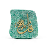 Orah Jewels presents an exquisite handcrafted wall frame, adorned with meticulously cut and polished natural gemstones. At its heart, the sacred inscription "قُلْ هُوَ ٱللَّهُ أَحَدٌ" (Qul Huwa Allahu Ahad) is elegantly displayed, meaning "Say, He is Allah, [who is] One." This profound verse from Surah Al-Ikhlas (112:1) emphasizes the oneness and absolute uniqueness of Allah, symbolizing purity of faith and divine unity. The inscription serves as a timeless reminder of devotion and spiritual strength, making this piece a meaningful addition to any space.