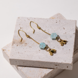 Discover the serene beauty of these handcrafted earrings from Orah Jewels, featuring genuine amazonite sourced from the stunning landscapes of Gilgit Baltistan. The unique hexagonal shape of the amazonite beads showcases the stone's delicate, pale blue-green hues, reminiscent of glacial waters.