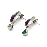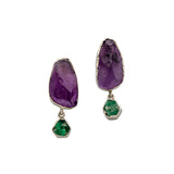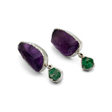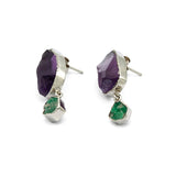 A celebration of nature’s rich and vibrant hues, these handmade earrings feature raw amethyst paired with natural emeralds from Swat Valley. Set in sterling silver, they capture the organic beauty and unique textures of each stone, reflecting the playful, shifting colours that inspired the Satrangi Collection.