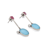 A harmonious blend of color, sparkle, and artistry, these handcrafted earrings feature organically shaped blue topaz stones paired with raw pink tourmaline accents. A faceted white topaz adds a touch of brilliance, beautifully balancing the design. Set in sterling silver, this piece reflects the playful, shifting hues of the Satrangi Collection, vibrant, elegant, and naturally radiant.