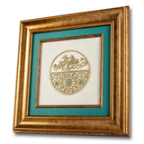 To enhance its beauty and energy, the frame is adorned with genuine Aventurine gemstones sourced from the picturesque region of Khyber Pakhtunkhwa. Known for its calming green hues and spiritual significance, Aventurine promotes peace, balance, and emotional well-being, creating a harmonious synergy with the divine words.