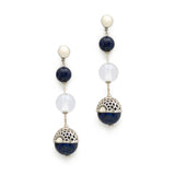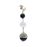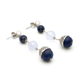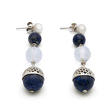 These expertly handcrafted earrings combine the deep blue allure of lapis lazuli with the subtle elegance of milky quartz, set in sterling silver. Featuring a distinctive geometric pattern, the Lapis & Quartz Silver Jahanara Earrings offer a refined balance of color and form, perfect for those who appreciate artisanal craftsmanship and timeless design.