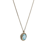 An oval blue topaz rests in a silver pendant with a twisted wire design, its brilliant blue hue reflecting calm and elegance. Part of the Sunheri Shaam collection, this piece evokes the serene glow of a golden evening.