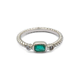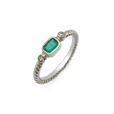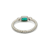 A natural emerald from Swat Valley is set on a silver band featuring a twisted wire design, combining elegance with subtle texture. Part of the Sunheri Shaam collection, this ring reflects the serene beauty of a golden evening.