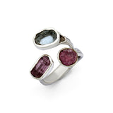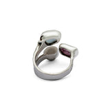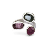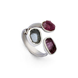 A celebration of fleeting colours, this ring features two pink tourmalines paired with a sparkling blue topaz, echoing the soft, shifting hues that inspired the Satrangi Collection. Set in sterling silver, it captures a playful harmony of tones, a piece that feels joyful, vibrant, and full of natural wonder.