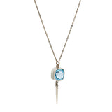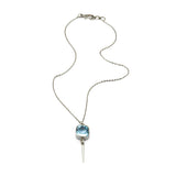 A natural blue topaz from Skardu Valley is set in a silver pendant, its brilliant blue hue radiating clarity and elegance. Part of the Sunheri Shaam collection, this piece captures the serene beauty of a golden evening.