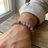 Lilac Jasper is known for its grounding and calming qualities, often associated with emotional balance, clarity, and inner strength. Its subtle purple hues paired with organic markings create a refined yet masculine aesthetic, making this bracelet ideal for everyday wear or understated statement styling.