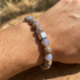 Rooted in the rugged landscapes of Baluchistan, this Lilac Jasper Beaded Bracelet celebrates the quiet strength and natural beauty of Pakistan’s indigenous gemstones. Crafted with 20 round 10 mm beads, the bracelet features soft lilac tones interwoven with earthy patterns, making each piece uniquely expressive.