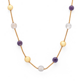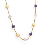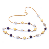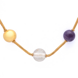 Introducing our exquisite "Ethereal Aura" jewelry collection, a harmonious fusion of amethyst, quartz, and silver beads, each meticulously handcrafted and adorned with a luxurious gold plating. This stunning collection is a testament to the timeless allure of nature's most captivating gemstones, designed to capture the essence of elegance and spirituality.