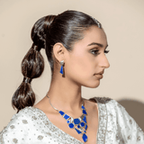 Handcrafted in silver, the Safa Earrings feature geometric designs inlaid with deep, celestial lapis lazuli. Inspired by the heritage and architectural elegance of Shigar Fort, each pair is meticulously crafted by skilled artisans, celebrating timeless craftsmanship and heritage-inspired design with a contemporary edge.