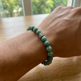Crafted with 10 mm round beads of natural aventurine sourced from the lush valleys of Swat, Khyber Pakhtunkhwa, this bracelet reflects nature’s quiet strength and renewal. Known for its soothing green tones and subtle shimmer, aventurine has long been admired for its association with balance, confidence, and positive energy.