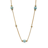 This piece takes its colour from Basant mornings, when Lahore’s sky stays pale, clear, and bright. Amazonite spheres in a soft blue are spaced along a gold tone chain, finished with subtle wrapped details.