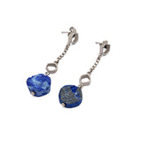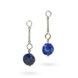 The earrings feature polished lapis drops suspended from sleek geometric links, crafted in a cool-toned metal finish. The linear construction creates a graceful vertical movement, allowing the stone to catch light with every turn. Minimal yet striking, the design balances structure and fluidity, echoing Orah’s signature approach of blending modern form with meaningful materials.