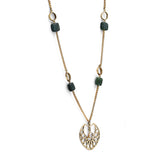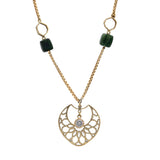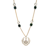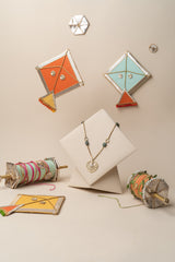 Spring green is the signature of Basant in Lahore, seen across rooftops and open skies. Deep nephrite stones line the chain, finished with a centre pendant inspired by the many kite shapes of Basant, detailed with a Topaz at its heart.