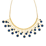 Crafted in silver with 24K gold plating, the Mehrunisa Necklace features exquisite gemstone inlay work that celebrates heritage artistry. One side is adorned with luminous mother-of-pearl from Gwadar, while the other showcases the deep, celestial blue of lapis lazuli. Meticulously hand-polished and thoughtfully designed, this statement necklace embodies the timeless elegance of craftsmanship, bringing a touch of royal legacy into contemporary luxury.