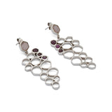 Handcrafted in silver, the Noorbanu Earrings feature natural, raw ruby and rose quartz sourced from Afghanistan. The irregularly shaped stones and uniquely formed silver elements are thoughtfully connected, reflecting the organic textures and asymmetrical beauty found in the historic stonework and architectural details of Shigar Fort. Meticulously crafted by skilled artisans, these earrings celebrate heritage-inspired craftsmanship while bringing a contemporary, artisanal edge to luxury jewelry.