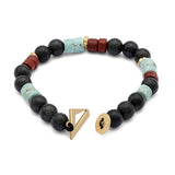 A bold expression of art and craftsmanship, this brass bracelet by Orah Jewels and Crafts combines black jasper from Balochistan, amazonite from Gilgit-Baltistan, and red jasper in a striking symphony of color. Each stone tells a story — of strength, balance, and creative freedom.