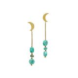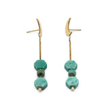 These captivating drop earrings feature genuine Aventurine gemstones, ethically sourced from the picturesque Swat Valley in Pakistan, a region renowned for its vibrant, high-quality minerals. The stones, showcasing a beautiful variegated green with a subtle shimmer, are minimally polished into free-form, faceted shapes, allowing the raw, natural beauty and good fortune properties of the Aventurine to shine through. This green gemstone, often associated with prosperity and calmness, is strung on a delicate brass chain, creating an elegant, elongated silhouette.