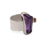 A piece that reflects the quiet elegance of nature. This ring features raw, natural amethyst set in sterling silver, showcasing the stone’s rich purple tones and organic texture. A design that feels serene, mystical, and effortlessly refined, capturing the subtle beauty of untouched gemstones.
