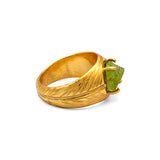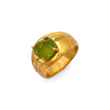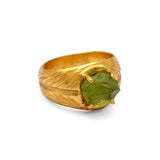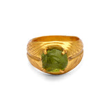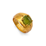 A modern twist on a classic form, this signet ring features a raw peridot set in sterling silver with 24k gold plating. The vibrant green of the stone captures the fresh energy of nature, while the clean, bold design of the ring balances strength with elegance. A piece that feels grounded, luminous, and effortlessly striking.