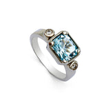 A classic silver band elegantly holds a natural blue topaz from Skardu Valley. The gem’s brilliant blue hue catches the light beautifully, creating a timeless piece that radiates refined elegance.