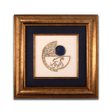 Enhance the aesthetic appeal of your home with our meticulously handcrafted wooden wall frames/hangings. These elegant frames feature a striking combination of wood and a sophisticated black-and-white interior lining. What makes them truly captivating is the flawless inlay of Lapis Lazuli from Afghanistan, skillfully integrated into the metal to form an eye-catching geometric pattern.