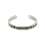 Introducing a stunning steel unisex bangle from Orah Jewels and Crafts, meticulously inlaid with green idocrase stone by our skilled artisans. This exquisite piece features the traditional pietra dura technique, known as parchan kari in Urdu. Pietra dura, an ancient art form originating from the Italian Renaissance, involves inlaying finely cut and polished stones into a stone base, creating intricate and beautiful patterns.