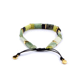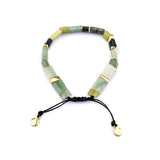 A beautiful combination of Serpentine and Jasper strung along with brass baguettes into a lovely bracelet to wrap around your wrist with an adjustable string with dangling brass trinkets n each side. This captivating piece is sure to add character to the whole look.